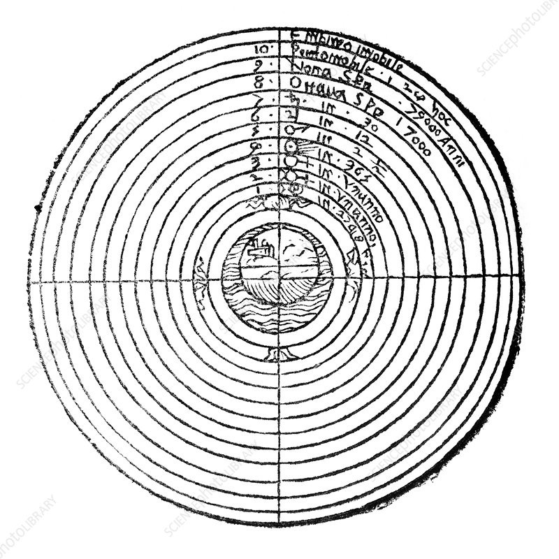 이 이론은 고대 그리스 물리학자와 천문학자들에 의해 체계화되었다.